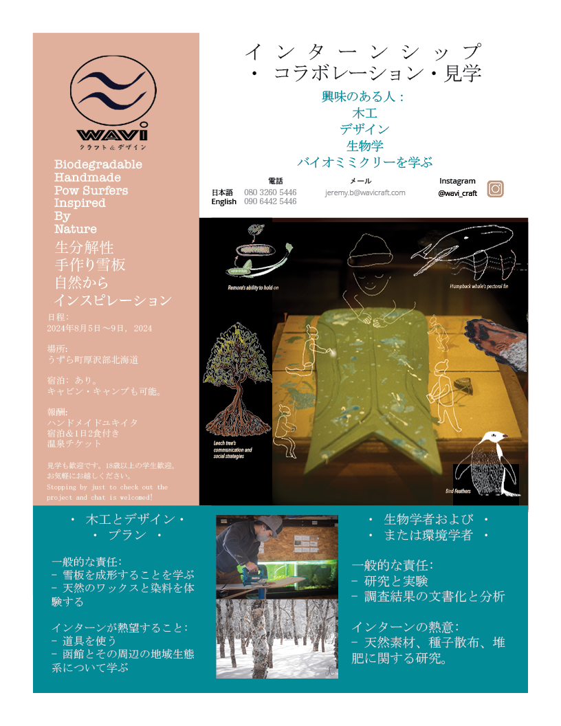 興味のある人:木工、デザイン、生物学、バイオミミクリーを学ぶ